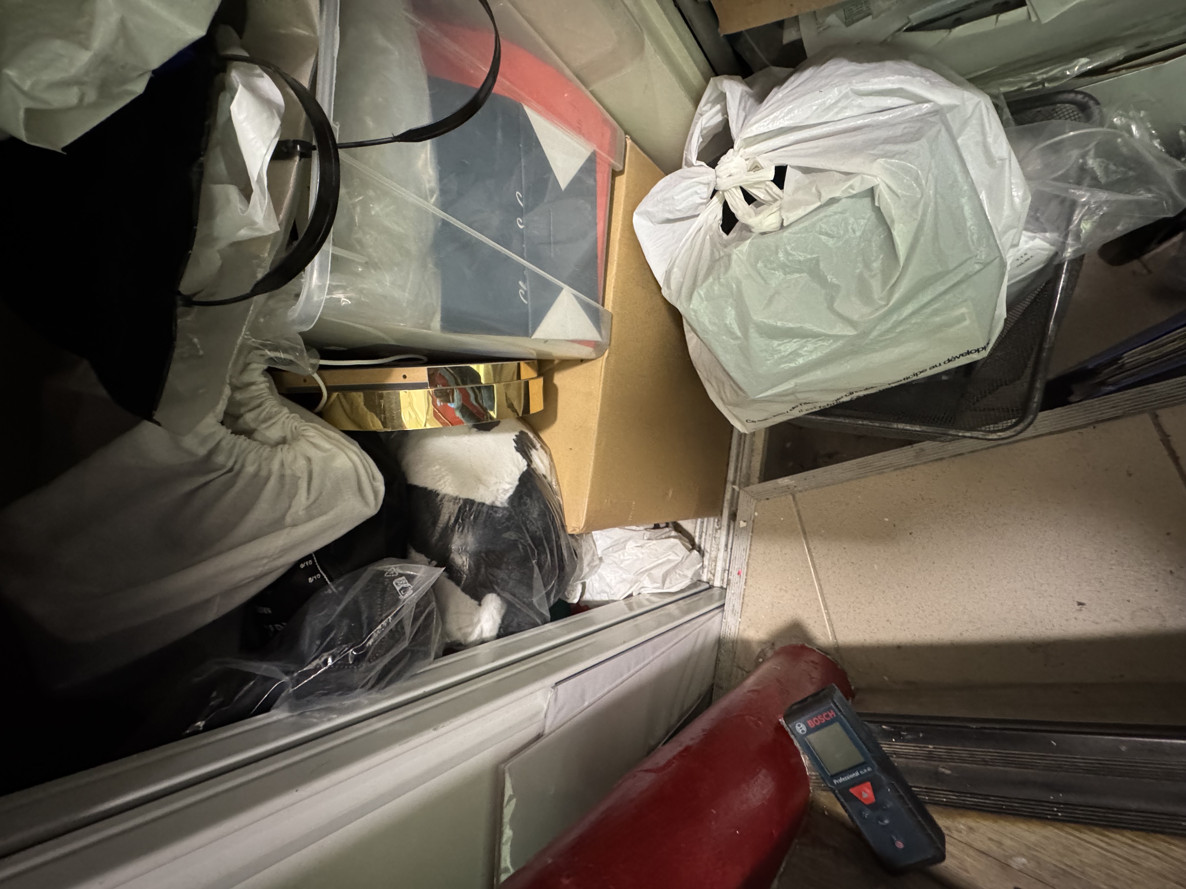 - Étagères dans le grenier, faire des tablettes pour augmenter la surface de rangement